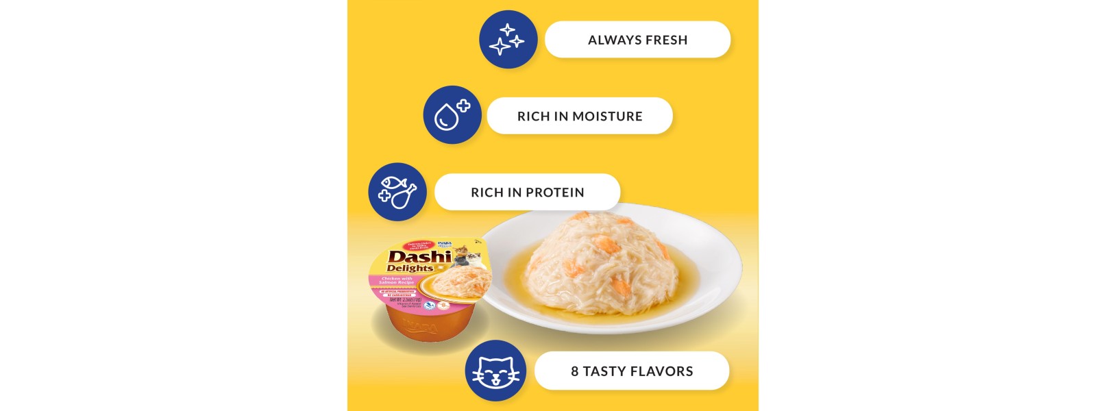Dashi je tradiční japonský rybí vývar z tuňákových vloček, který je známý svou vyjímečnou, lahodnou chutí. Zařazení Dashi do jídelníčku vaší kočky může dodat krmení nový rozměr a učinit ho vyjímečným zážitkem. Nejde jen o chuť - dashi může poskytnout i důležité živiny včetně vitaminů a minerálů. Dashi má nízký obsah kalorií a tuku, takže je zdravým doplňkem stravy vaší kočky. Je to produkt na bázi vývaru, což znamená, že obsahuje vysoké množství vody a tím pomáhá udržet zdraví vaší kočky. Dashi se může stát chutným a výživným doplňkem stravy vaší kočky, který si díky její neodolatelné chuti určitě zamiluje. Všechny produkty Inaba jsou vždy bez obilovin, zbytečných ingrediencí a pochybných přísad a jsou vyrobené z pravého mořského tuňáka a kuřat chovaných na farmách.